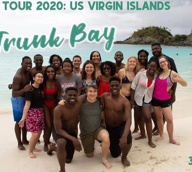 During our 2020 Spring Break, right before the COVID-19 pandemic, we traveled to U.S. Virgin Islands from March 7th to March 16th. Our intent was to spread love through song and service. We were especially eager to learn from the Virgin Islands’ rich history of Gospel music. We focused on community engagement through performance and volunteer work at various venues including churches, schools, and nursing homes. We learned from each other and from those we encountered as we shared the gospel tradition and the Gospel of Jesus Christ across racial, faith-based, and political boundaries. You can watch some of our tour experiences at https://www.youtube.com/watch?v=hqsrZ1LgeJc.